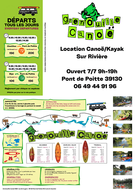 GRENOUILLE CANOE in Pont de Poitte.