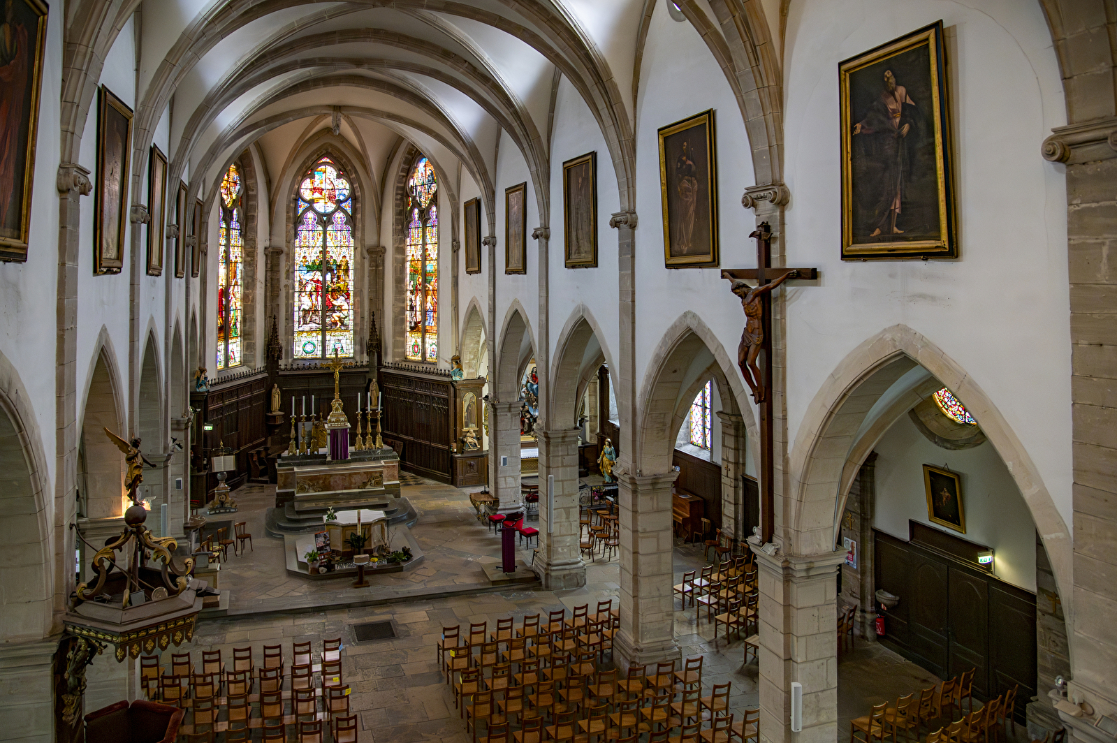 Wenn Sie die Tür dieser Kirche aufstoßen, entdecken Sie eine reiche Ausstattung, die zum Teil aus der Abteikirche stammt, wie z. B. das berühmte Rednerpult. An sonnigen Tagen sind die Kirchenfenster flammend schön! Schauen Sie genau hin, denn die Szenen beschreiben wichtige Ereignisse aus der Geschichte Baumas.