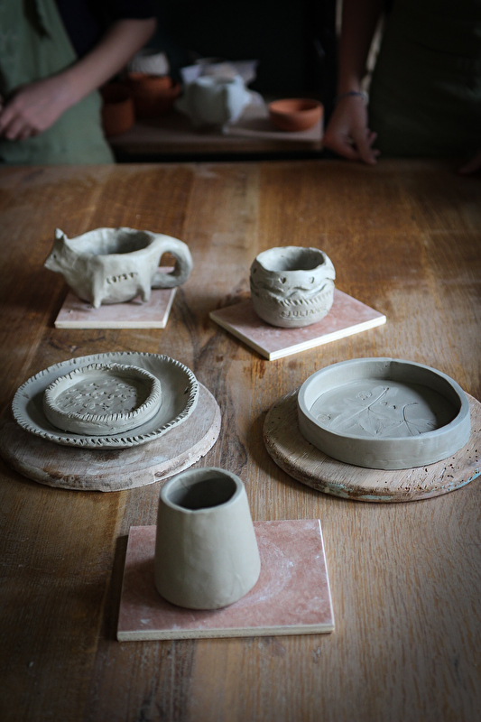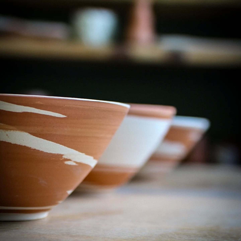 Sofia, die in Argentinien ausgebildet wurde und seit über zehn Jahren unterrichtet, bearbeitet Ton auf der Töpferscheibe und durch Modellieren, in einem handwerklichen, ökologischen und sensiblen Ansatz.