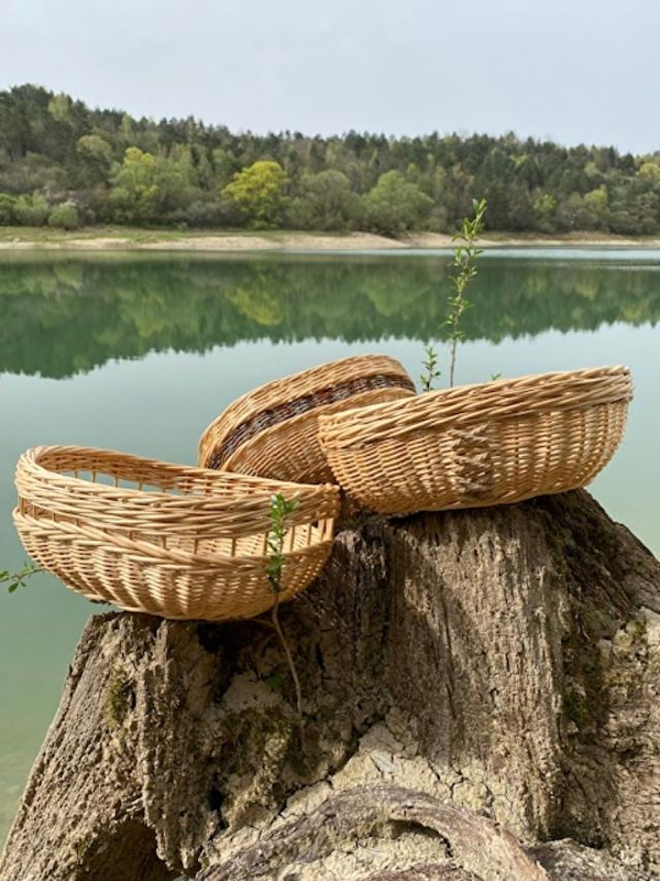 Magali, eine Korbflechterin, flechtet Weiden mit Leidenschaft in ihrer Werkstatt in der Terre d'Emeraude in der Nähe des Staudamms von Vouglans, wo sie ein althergebrachtes Wissen wiederbelebt, indem sie einzigartige, mit Geduld und Poesie handgefertigte Gebrauchsgegenstände und/oder Dekorationsartikel für den Alltag herstellt.