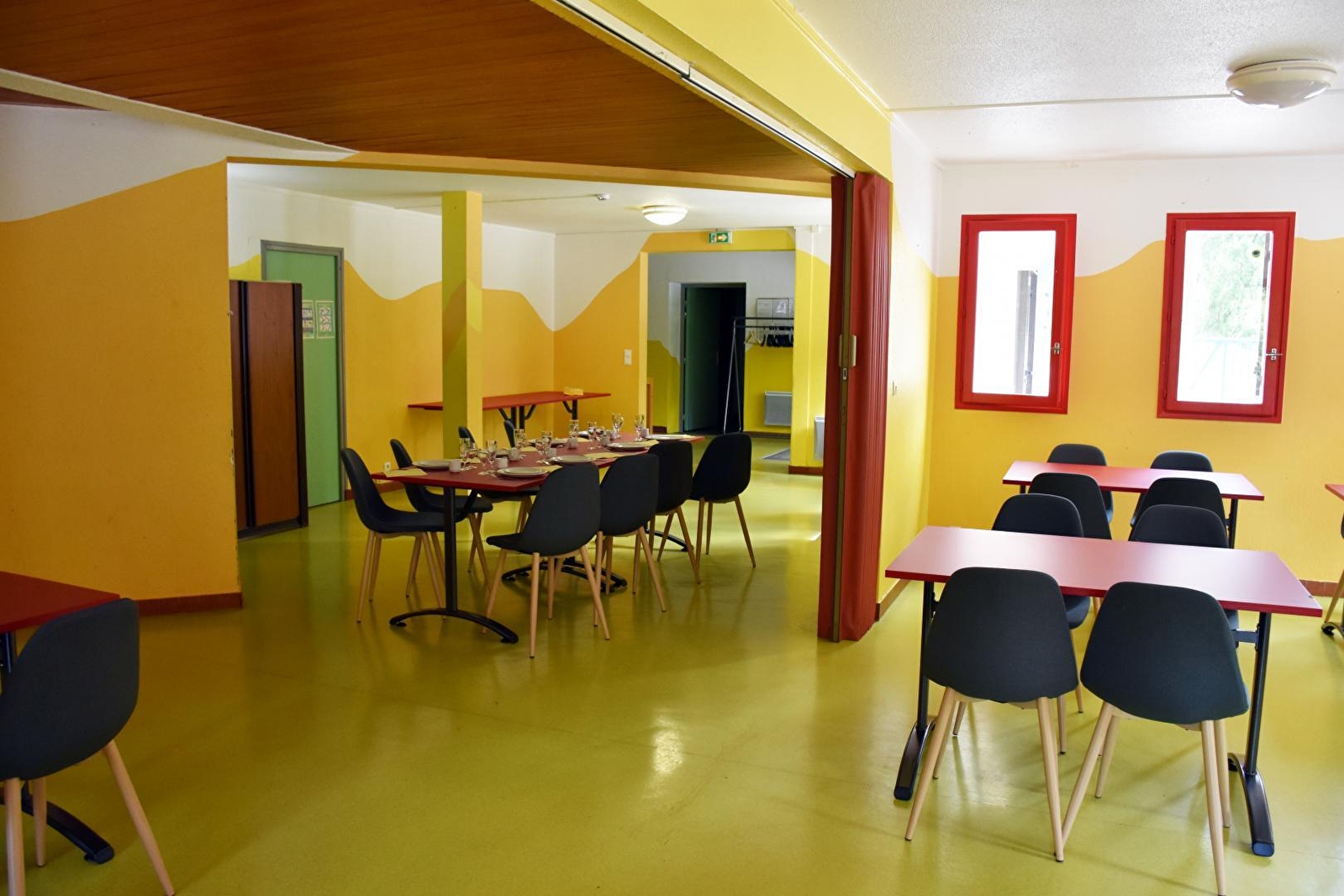 Ein großes Esszimmer, ein Wohnzimmer und eine Küche befinden sich im Erdgeschoss, die Zimmer sind auf die erste Etage verteilt (7 Zimmer für 3, 4, 5 und 6 Personen), 6 Duschen, 7 WCs. Die Unterkunft kann in Selbstverwaltung gemietet werden.