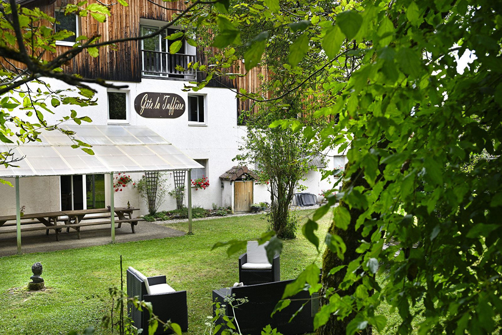 La Tuffière, an den Wanderwegen gelegen. Großer Park mit Bäumen, große überdachte Terrasse, Boule- und Volleyballplatz. Eine Oase der Ruhe, 200 m von der Loue für Angler und den kurvigen Straßen für Motorradfahrer entfernt. Möglichkeit, Feste und Geburtstage zu organisieren. Unterkunft mit 10 Zimmern, die jeweils mit einem Badezimmer und einer Toilette ausgestattet sind. Regionale, hausgemachte und abwechslungsreiche Küche. Aufenthalt à la carte.