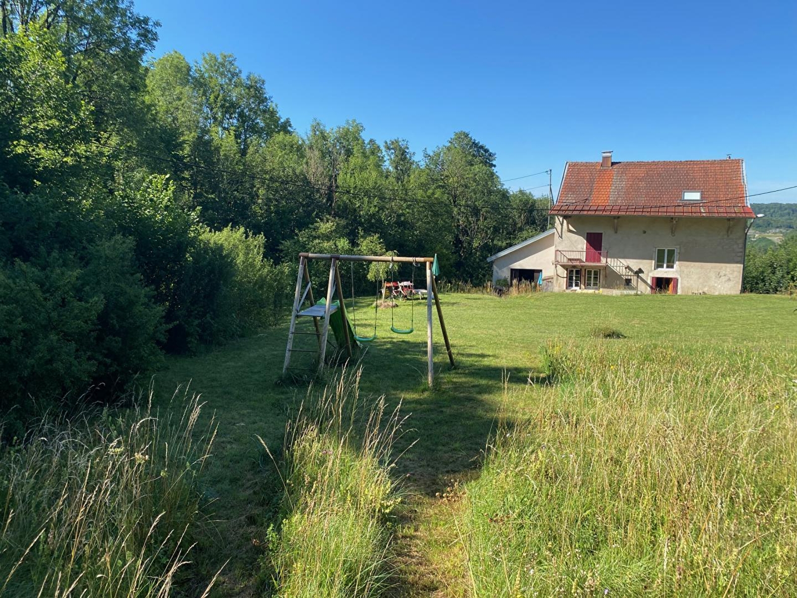 Schönes, geschmackvoll eingerichtetes Jurahaus aus dem Jahr 1889, das unabhängig ist und das Tal überblickt. Es ist von einer außergewöhnlichen natürlichen Umgebung umgeben, die Groß und Klein begeistern wird. Das Haus verfügt über eine Eingangshalle, eine voll ausgestattete Küche, ein Esszimmer, einen Wohnbereich mit Kamin und zahlreichen Gesellschaftsspielen. Außerdem gibt es ein großes Badezimmer (Badewanne) und ein separates WC. Im Obergeschoss befindet sich ein großes Zwischengeschoss mit Tischfußball, Bibliothek, 2 Schlafzimmer mit je einem Doppelbett und ein drittes Schlafzimmer mit 3 Einzelbetten, ein Badezimmer mit begehbarer Dusche, Doppelwaschbecken und WC. Im 2. Stock finden Sie ein 4. Schlafzimmer mit 3 Einzelbetten und ein 5. Schlafzimmer mit 1 Doppelbett. Kein Fernseher in der Unterkunft, denn die verschiedenen Lebensbereiche im Haus und vor allem die äußere Umgebung inmitten der Natur und auf einem gallorömischen Platz laden dazu ein, bemerkenswerte Momente mit der Familie und Freunden zu verbringen. Angrenzend befindet sich ein großes, bewaldetes, nicht eingezäuntes Grundstück, auf dem Ihnen Gartenmöbel, Schaukel, Rutsche und Grill zur Verfügung stehen. Außerdem befindet sich das Ferienhaus am Ufer des Flusses Héria, mit Baden in den Wasserfällen (Kinder unter Aufsicht der Eltern). Internet mit guter 4G-Abdeckung für alle Verbindungen über die eigene Ausrüstung und das persönliche Abonnement. Alle Einkaufsmöglichkeiten in 4 km Entfernung