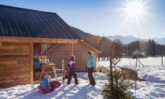 Du findest hier auch einen Spielbereich zum Erlernen des Langlaufs direkt gegenüber den Unterkünften!