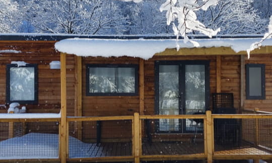 Hier sind zwei Landunterkünfte mit großer Kapazität (7 und 14 Plätze), die mitten in der Natur liegen und für deinen nächsten Winterurlaub mit der Familie oder mit Freunden perfekt geeignet sind.