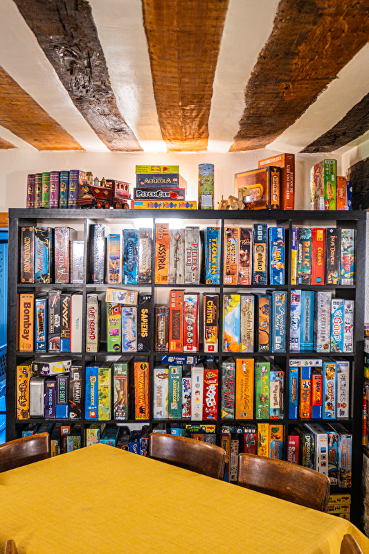 Als La Valis'à Jeux im Jura landete, stellte sie ihr Gepäck im Saal des Gasthauses ab. Was für ein Glück! Bei Ihrem Besuch haben Sie also Zugang zu einer Ludothek mit über 500 Gesellschaftsspielen.
