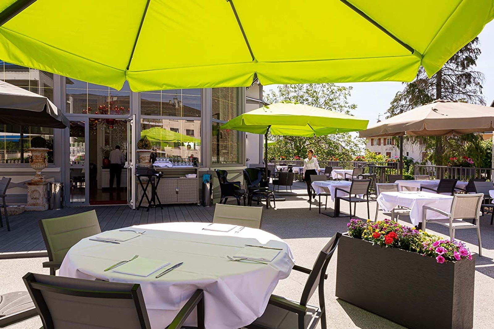 Das gesamte Team des Restaurants erwartet Sie, um Ihnen einen einzigartigen Ort zu zeigen, der tagsüber lichtdurchflutet, abends gedämpft und intim ist. Sie werden Ihnen die raffinierte Einrichtung, die bequemen Sessel, die wunderschönen Leuchten aus Murano (Italien), die schönen handgefertigten Glasfenster im "Art déco"-Stil, die schönen Teller und die weiße Tischdecke schmackhaft machen. Und natürlich die traditionelle, leckere, großzügige und schmackhafte französische Küche des Küchenchefs Rudy Desplanque. Entdecken Sie sie à la carte oder als Menü.