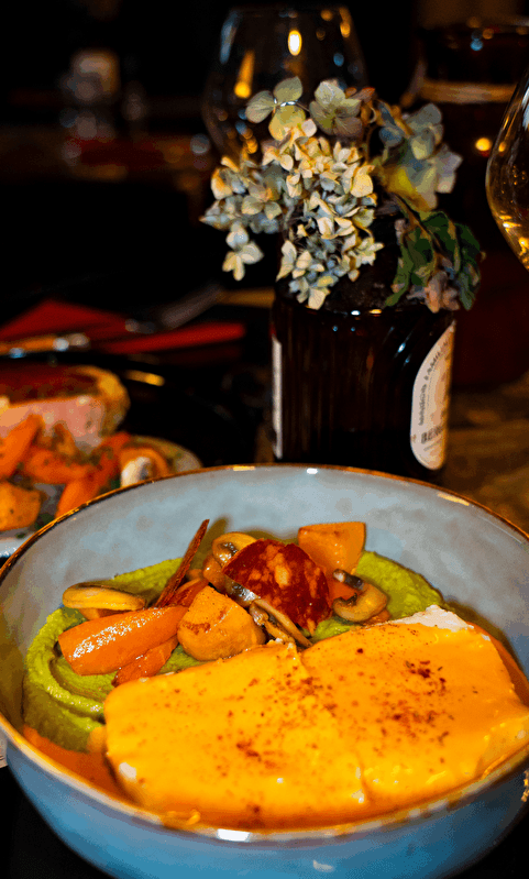 Das kulinarische Erlebnis wird durch eine ausgefeilte Getränkekarte ergänzt, die Mixologie-Kreationen und ausgewählte Weine zu den charaktervollen Gerichten umfasst.
