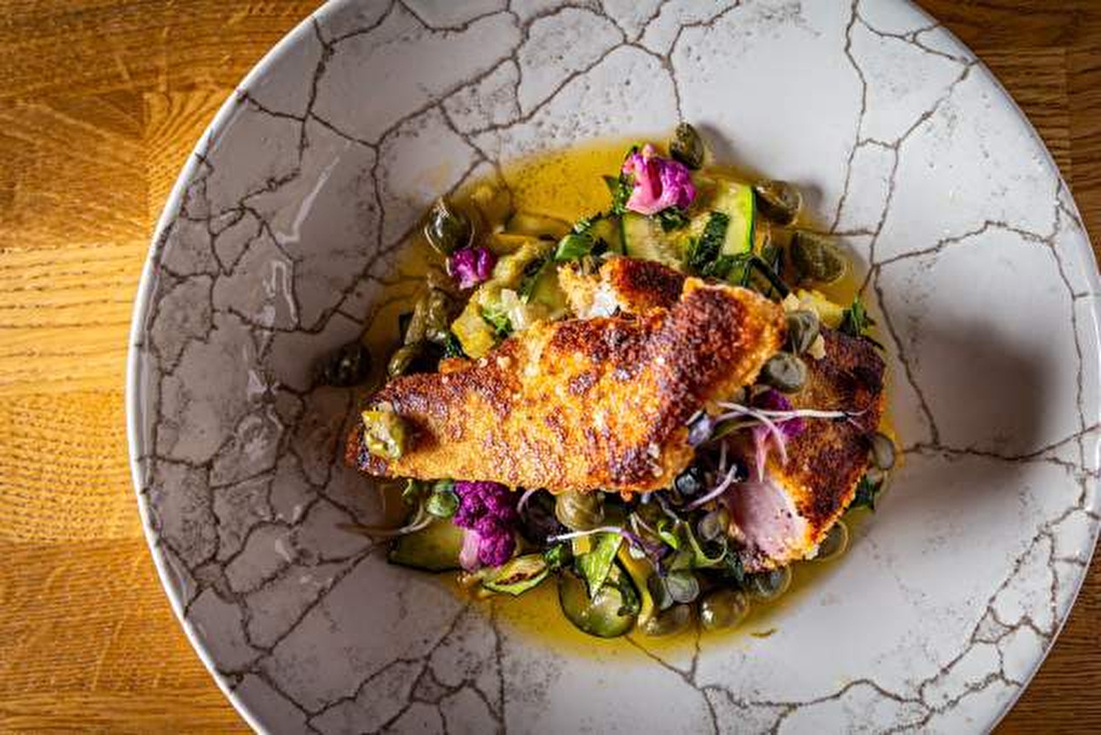 Die Speisekarte, die vom Chefkoch und seinem Team zusammengestellt wird, ist erfinderisch und zeitgemäß. Bei ihrer Zusammenstellung orientiert sie sich an den Jahreszeiten und den Möglichkeiten, die das Land und die Gezeiten bieten. Das Menü, das sehr regelmäßig wechselt, hebt außergewöhnliche Fleisch- und Fischgerichte hervor, die mit großer Sorgfalt bearbeitet werden. Die Aufmerksamkeit, die den Garvarianten und den Texturen gewidmet wird, trägt aktiv zur Finesse der angebotenen Gerichte bei.