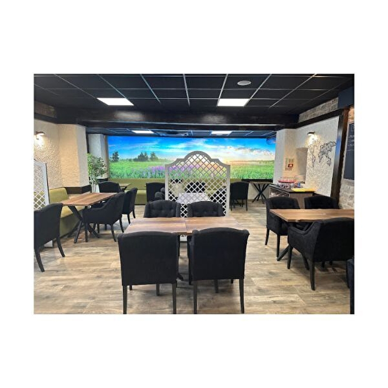 Man trifft sich hier zum Mittag- oder Abendessen im großen Saal oder um an der Bar ein Glas zu schlürfen und ein Aperitifbrett zu teilen. An schönen Tagen genießt man die schöne Terrasse mit Blick auf den Place Courbet.