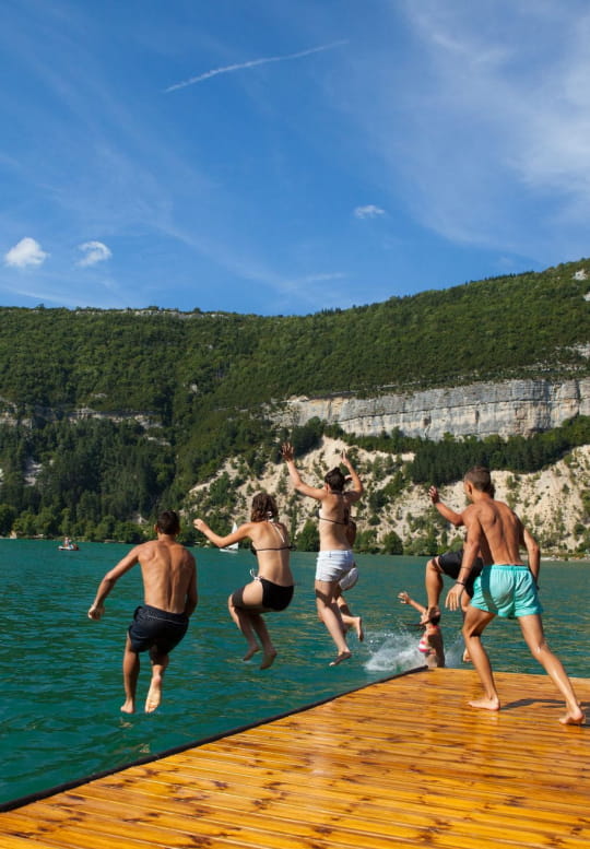 Das Juragebirge steckt voller Möglichkeiten zum Baden! Dir wird eine Vielzahl von Möglichkeiten geboten, um dich während der großen Sommerhitze abzukühlen. Für Wasserspaß oder Entspannung zu jeder Jahreszeit in beheizten Gewässern: Seen, Flüsse, Schwimmbäder, Thermen... Du bist verwegen und magst das kalte Wasser der Flüsse? Oder eher ein überwachter Strand mit türkisfarbenem Wasser? Oder lieber Entspannung in den Whirlpools? Es ist für jeden Geschmack etwas dabei!