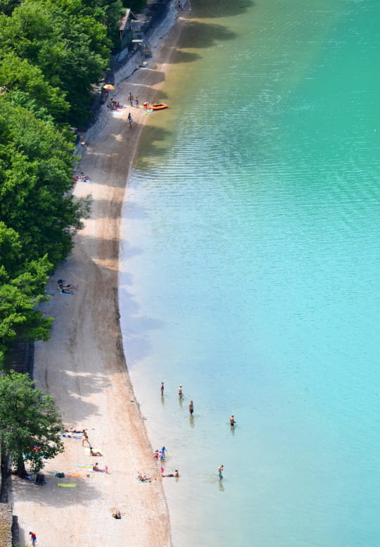 Im Herzen des Juragebirges wirst du manchmal den Eindruck haben, in einem kanadischen See (Lac Genin) oder inmitten der türkisfarbenen Gewässer der pazifischen Inseln zu baden (Lac de Vouglans).