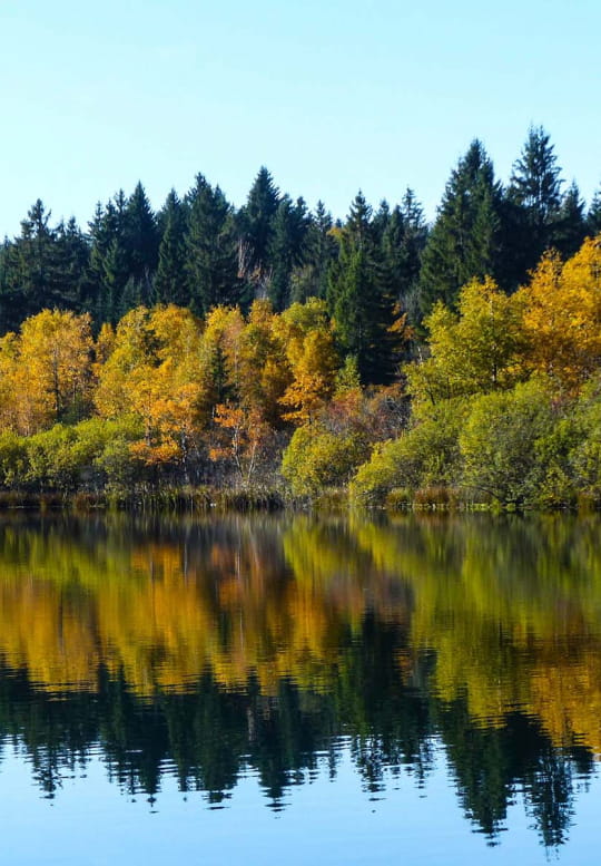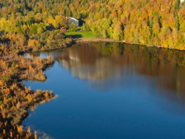 Jede Jahreszeit besitzt ihre vorherrschende Farbe, die wie in einem Spiegel auf dem Wasser des Lac de Bonlieu reflektiert wird: Im Winter ist es das makellose Weiß des Schnees, im Sommer selbstverständlich das Grün mit seinen zahlreichen Nuancen. Im Herbst ist es eine Explosion von Gelb und Orange... Und jedes Mal versetzt es einen in Staunen!