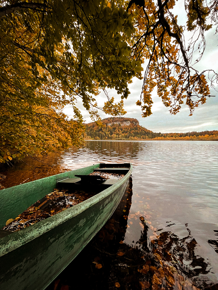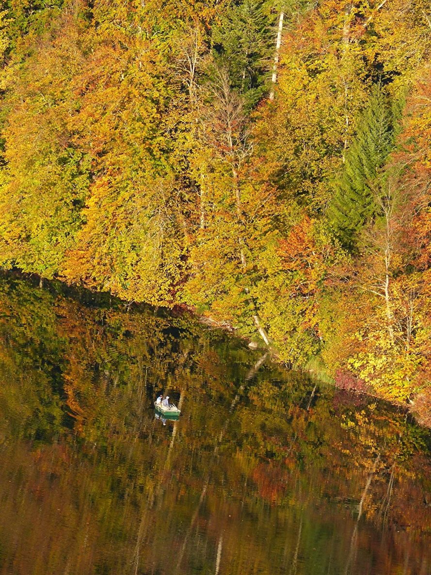 Bei deinem Spaziergang wirst du bestimmt (nicht motorisierten!) Fischerbooten begegnen. Das tiefe Wasser des Lac de Bonlieu ist nämlich sehr fischreich.