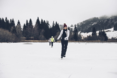 Der Lac de Lamoura ist nicht nur ein Sommersee, der sich den Wassersportaktivitäten widmet. Im Winter wird er (wenn die Temperatur es zulässt) zu einer Eislaufbahn unter freiem Himmel. Erkundige dich vorher beim örtlichen Fremdenverkehrsbüro (Les Rousses) ob das Schlittschuhlaufen gestattet ist oder nicht.