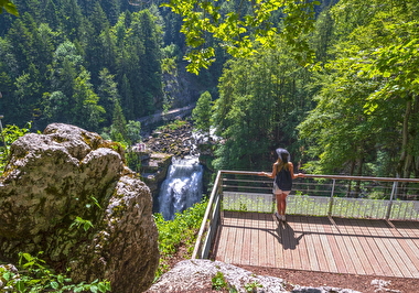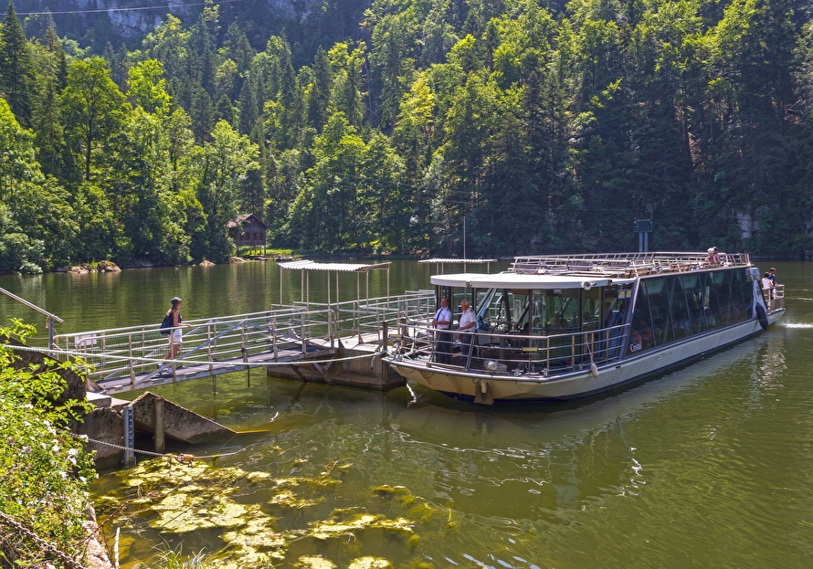 Zu Fuß, mit der Kutsche oder mit dem Boot: jede Entdeckung ist einzigartig.Dem Saut du Doubs kann man sich auf verschiedene Arten nähern. Die spektakulärste ist, mit dem Ausflugsboot dorthin zu fahren und so nach einer Bootstour in der grandiosen Landschaft der Doubs-Becken dem Saut du Doubs so nah wie möglich zu kommen.