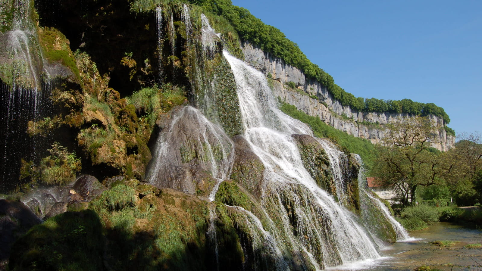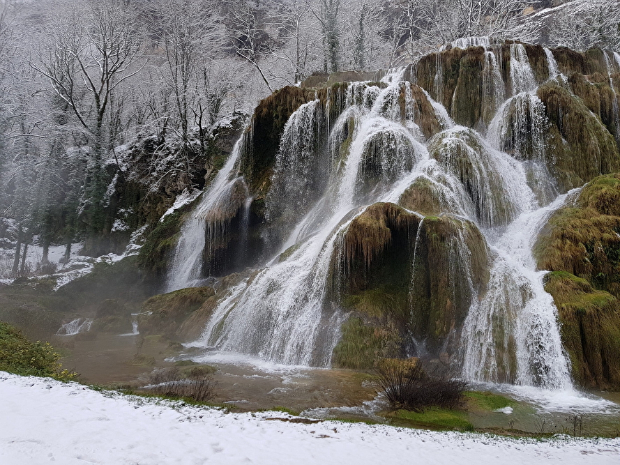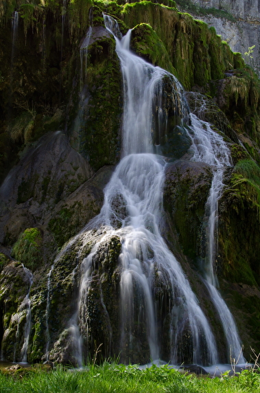 Am Ende des Tals von Baume-les-Messieurs gelegen, das eines der berühmtesten des Jura darstellt, ist der Wasserfall in vielerlei Hinsicht bemerkenswert. Das Wasser des Wasserfalls entstammt dem unterirdischen Fluss, dem Dard, der nach einem stürmischen Weg mitten durch die Höhlen aus der Erde hervortritt.