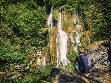 Willkommen am Wasserfall von Glandieu. Dieser Ort eignet sich für eine Familienwanderung oder einsame Spaziergänge und verzaubert! Alle Sinne sind hellwach: Das Auge verweilt auf den Reflexen des Wassers, das Gehör nimmt das Brausen des Wasserfalls wahr, und der Körper findet seine Lebensgeister wieder. Dieser stark geschützte Ort ist leicht erreichbar zu Fuß, mit dem Auto, aber auch mit dem Fahrrad. In der Nähe verläuft nämlich die ViaRhôna, eine ideale „Voie verte“, um die Entdeckung der Region Bugey zu verlängern.