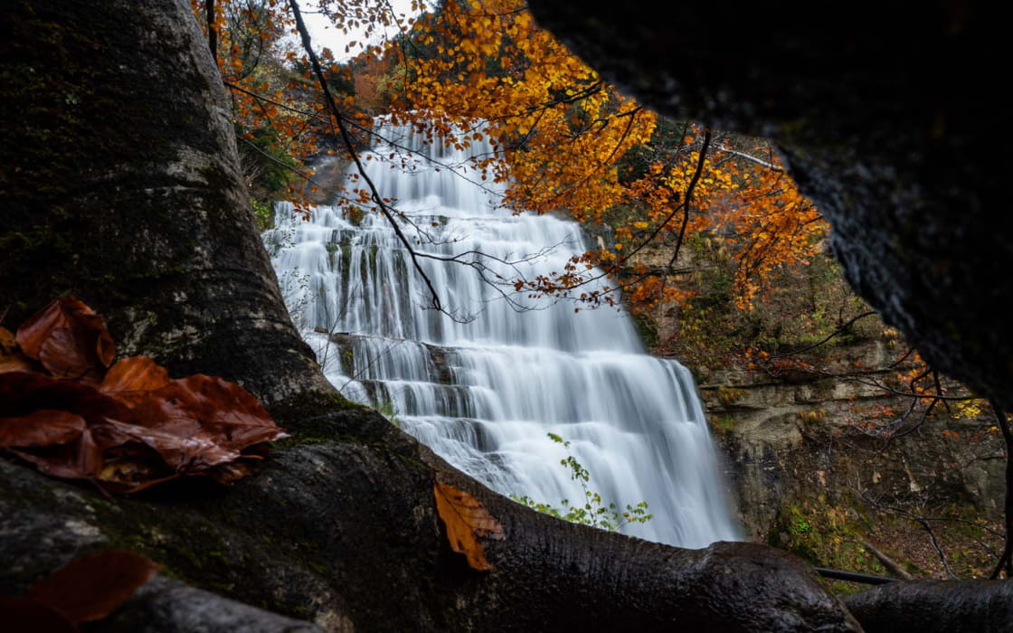 Die Terre d'Emeraude bietet im Herbst ein farbenprächtiges Naturschauspiel. Für Wanderer, die die zahlreichen Wasserfälle und Seen erkunden wollen, ist der Herbst die ideale Jahreszeit. Der von uns vorgeschlagene Wochenendtrip ist eine perfekte Mischung aus Highlights wie dem Lac de Vouglans oder den Cascades du Hérisson und diversen Geheimtipps, darunter eine Kanutour, eine Kräuterwanderung und der Besuch einer Schneckenfarm.