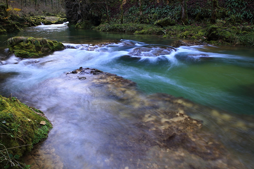 Das Wasser und der Fels halten den Blick gefangen und lassen lokale Legenden wie die Vouivre auftauchen, jene Frau, deren Stirn mit einem Edelstein geschmückt ist und die sich in eine Schlange verwandeln kann. Sie ist nämlich in der regionalen Folklore dafür bekannt, von Quelle zu Quelle zu wandern.
