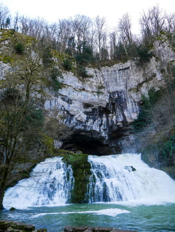 Celle qu'on appelle la source du Lison est surtout une impressionnande cascade sortant d'une grotte surmontée d'une immense paroi rocheuse.