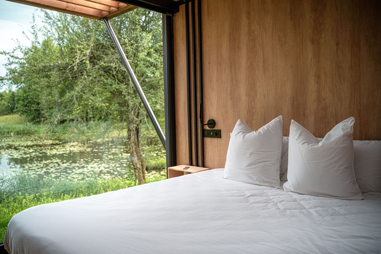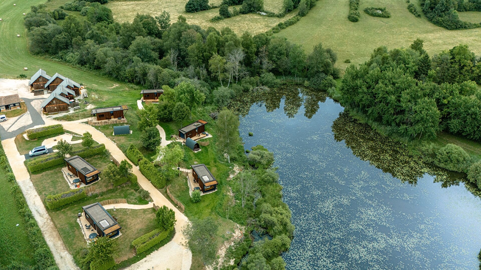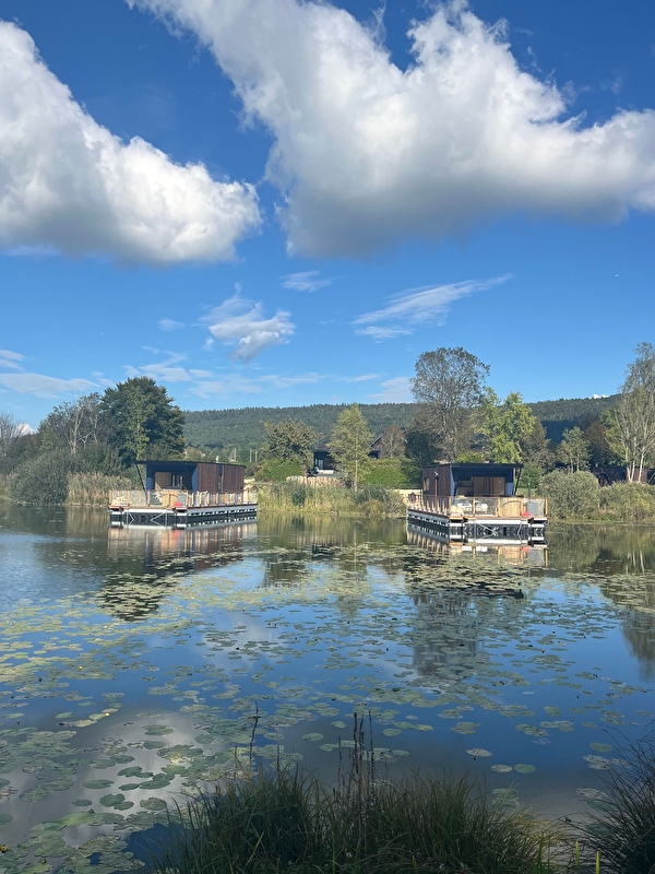 Für dieses neue Gebiet lässt sich Bleu Minuit im Departement Ain mit neuen Unterkünften auf dem Wasser nieder, deren Architektur eine Anspielung auf Freizeitboote ist. Am Ufer des Grand Etang du Genevray gelegen, empfangen diese neuen Lodges ihre Passagiere zu einer Sinnesreise zu anderen Horizonten...