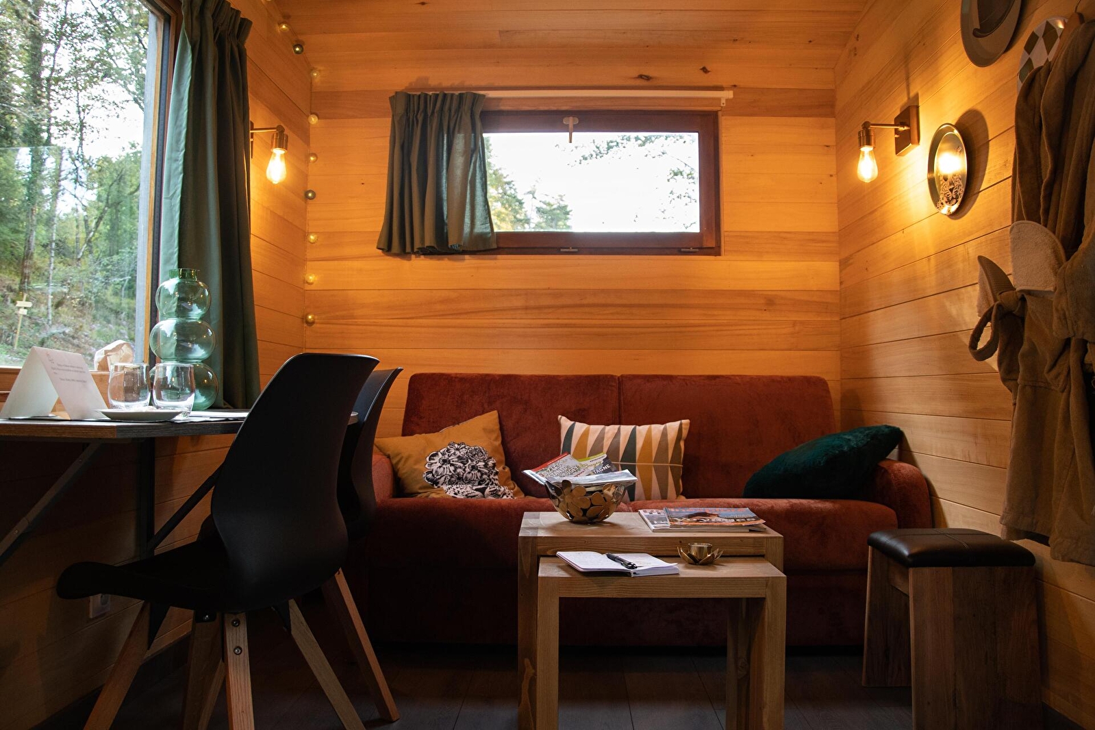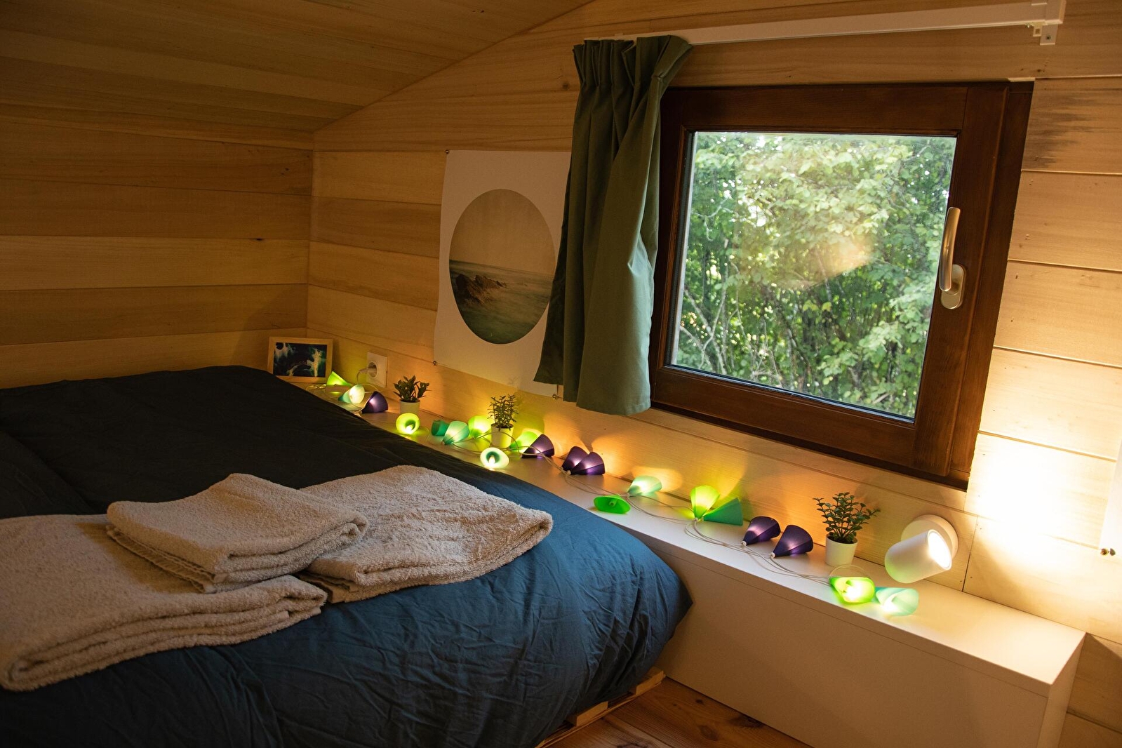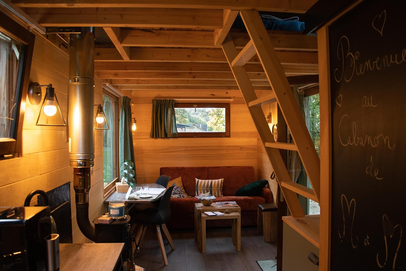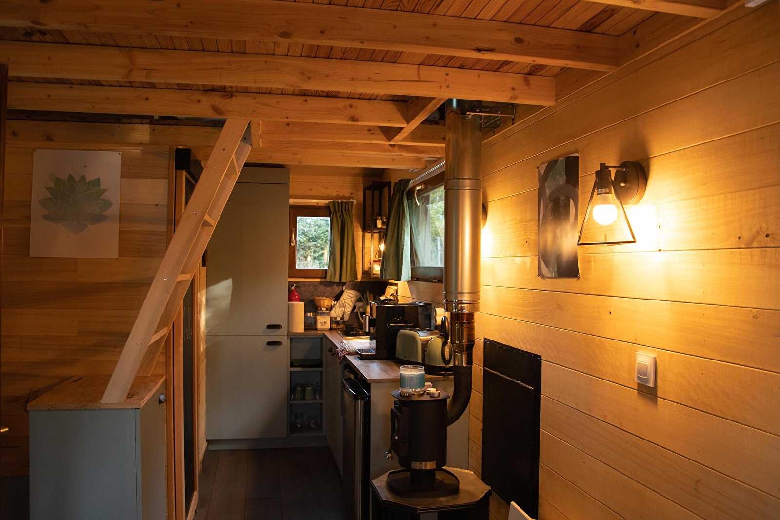 Gehen Sie den "Petit Chemin des tinys" entlang und Sie finden unseren gemütlichen und romantischen Tiny am Ende des Gartens! Drei Stufen und eine kleine Leiter führen Sie zu Ihrem Schlafzimmer im Zwischengeschoss, wo Sie eine kuschelige Bettdecke und Kopfkissen erwarten! Am Kaminofen im kleinen Wohnzimmer können Sie dann einen zeitlosen Moment erleben: Lesen, schreiben, zeichnen oder einfach nur meditieren, während Sie durch das Fenster die wunderschöne Zeder beobachten und das Knistern des Feuers hören. Und für die Feinschmecker unter Ihnen: In dieser Atmosphäre mit dem Geruch von Holz können Sie in der kleinen Essecke nach Lust und Laune eine Tasse heiße Schokolade mit Schlagsahne oder ein Fondue genießen! Sie werden verstehen, dass diese Tiny ein kleines Stück Paradies ist... Es lebe das Glück!
