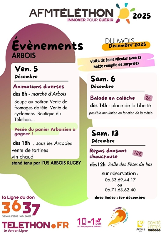 Auch dieses Jahr mobilisieren sich die Stadt Arbois und ihre Vereine für den Telethon 2025.