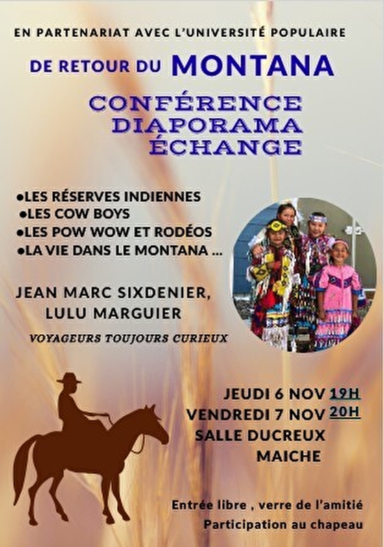 Eine Reise im Campingmodus ins Herz von Montana mit einer Entdeckung der Indianerreservate und der großen Weiten, einem Abstecher zum Yellowstone-Park und einem Lebensstil im amerikanischen Stil. Dia-Vortrag, moderiert von Jean Marc Sixdenier und Lulu Marguier