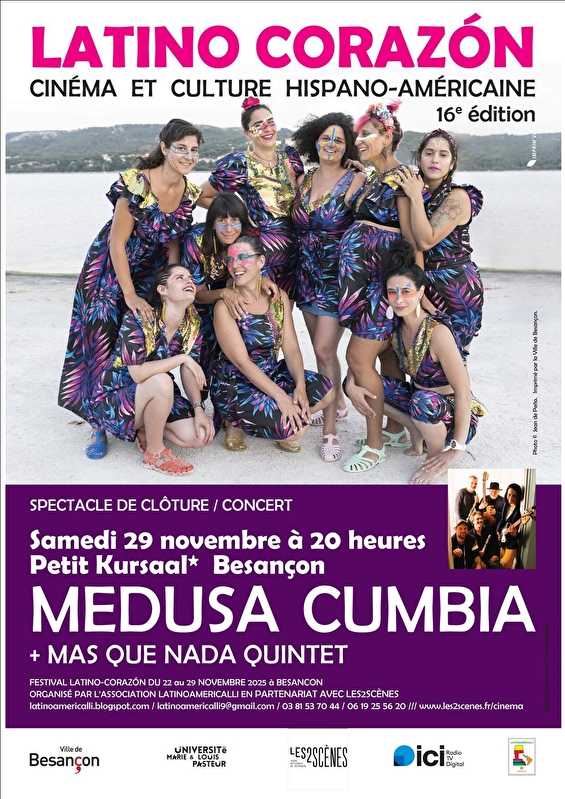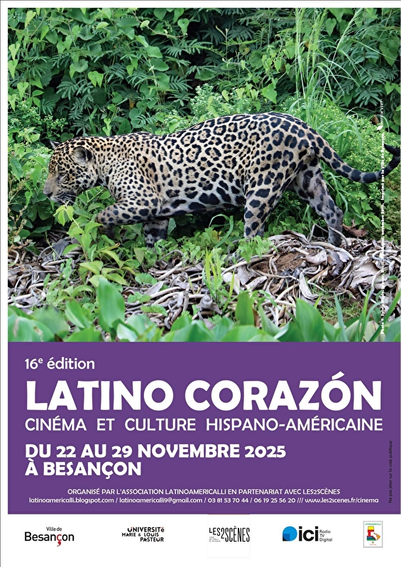 Dieses Jahr werden wir sieben neue und noch nicht veröffentlichte lateinamerikanische Filme zeigen, wie z.B. Diego Céspedes' chilenischen Film "Der geheimnisvolle Blick des rosa Flamingos". Das Festival Latino Corazón bietet auch eine Abschlussveranstaltung am 29. November, die jedes Jahr ein begeistertes Publikum anzieht. Dieser Tag wird mit Vereinen wie Conviv Tango, Arco Iris und Haute-Saône Mexique sowie mit lokal und international bekannten Künstlern gestaltet mit :