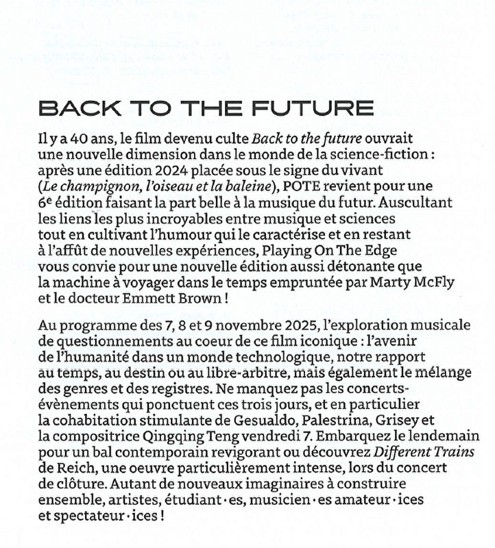 Vor 40 Jahren eröffnete der Kultfilm Back to the future eine neue Dimension in der Welt der Science-Fiction: Nach einer Ausgabe 2024, die im Zeichen des Lebendigen stand (Der Pilz, der Vogel und der Wal), kehrt POTE für eine