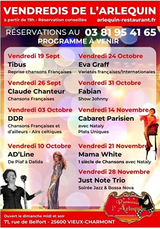Programmierung: Les Vendredis de l'Arlequin (Freitags im Harlekin)