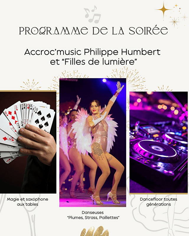 Auf dem Programm stehen Zauberei und Saxophon an den Tischen, Tänzerinnen "Federn, Strass, Pailletten" und Dancefloor für alle Generationen.