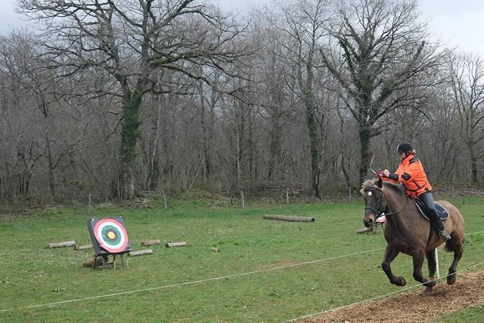 Bogenschießen zu Pferd mit Les Attelages du Grandvaux.