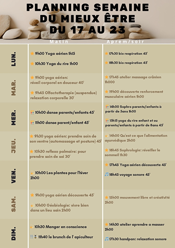Entstanden aus dem Wunsch, Ihnen an einem einzigen Ort die Entdeckung verschiedener Ansätze, die Ihnen gut tun, anzubieten, lädt diese Woche Sie dazu ein, zu erforschen, zu experimentieren und sich um sich selbst zu kümmern, vor allem aber, sich zu trauen.