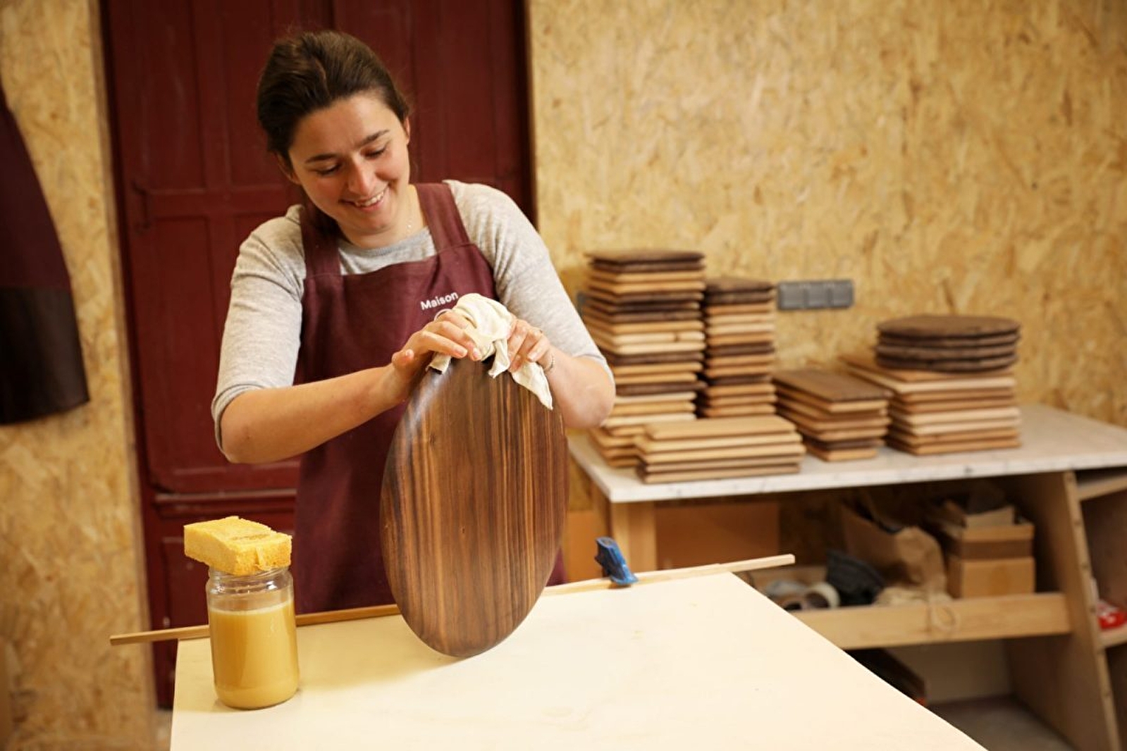 "Im Herzen des Jura denke, zeichne und entwerfe ich meine Holzobjekte, eine Region mit Seen und Wäldern, die meine Kindheit geprägt hat. Ich war schon früh umweltbewusst, und die Holzbranche schien mir eine "natürliche" Wahl zu sein. In meinem Atelier stelle ich Schneidebretter, Schalen, Solifloren oder sogar einige Holzspiele aus Bäumen aus dem Jura her. Traditionell hergestellte Holzobjekte, die jedoch entschieden modern sind. "