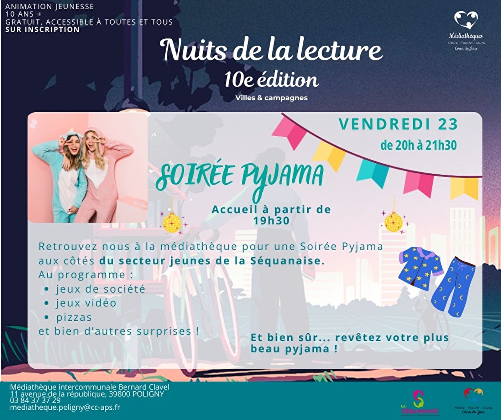 Sie finden uns in der Mediathek für eine Soirée Pyjama; an der Seite des Jugendsektors der Séquanaise.
