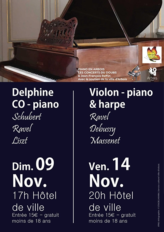 Charlotte an der Violine und Nathan Saluste-Bridoux am Klavier, Chloé Ducray an der Harfe :