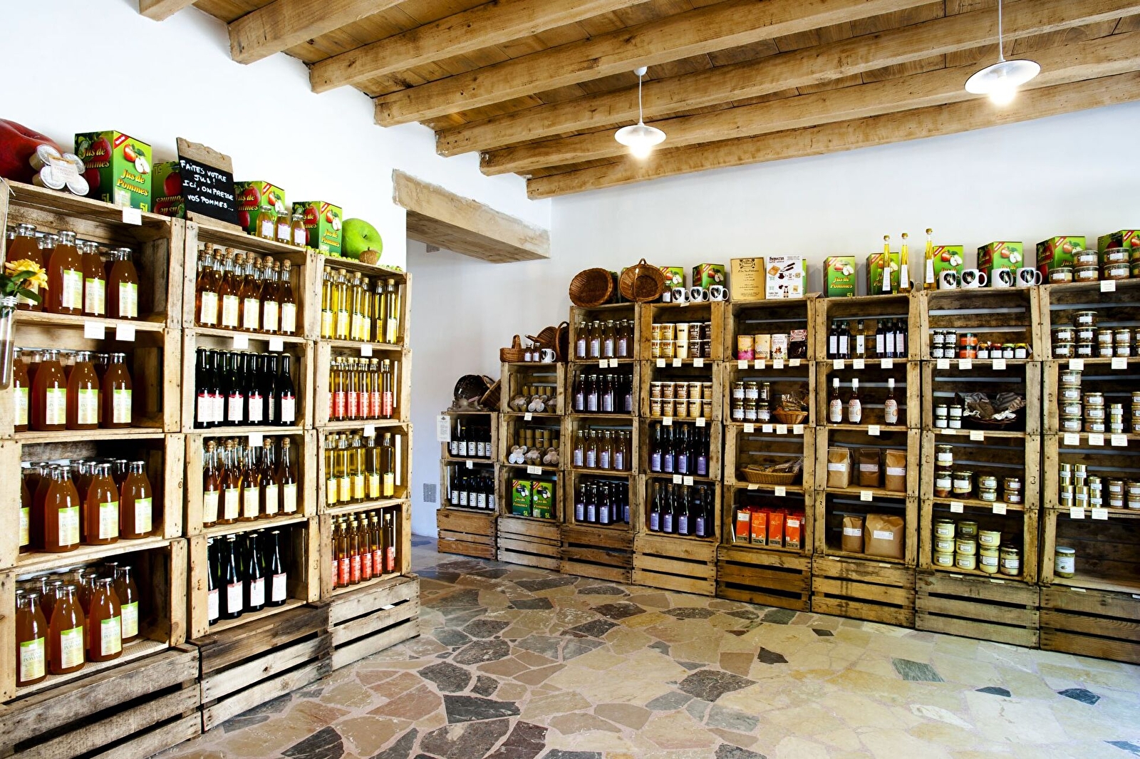 In diesem Laden für lokale Produkte finden Sie frische Produkte (Käse, Wurstwaren usw.), Fruchtsäfte, Kompotte, Apfelwein, Bier, Öle und Essig, Mehl, Kaffee, Kräutertees und Tees, Gewürze, Honig, Safran, Coulis, Foie gras und Terrinen.