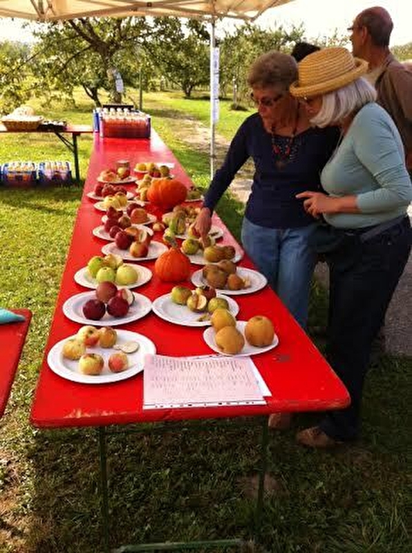 Verkostung und Verkauf von Apfelsaft, je nach Verfügbarkeit, das ganze Jahr über (+ Äpfel in der Saison). 15-minütige Diashow über die Aktivitäten und die Geschichte des Obstgartens "les 25 ans du verger" (Die 25 Jahre des Obstgartens).