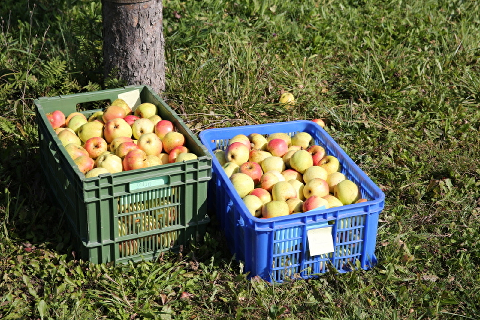 Auf einem 2,3 ha großen Grundstück haben wir eine Sammlung von 360 Bäumen, 140 Apfelsorten, 40 Birnensorten und einige Pflaumensorten. Alle Bäume wurden mit Pfropfreisern aus den traditionellen Obstgärten der Region gepfropft: Pays de Gex, Michaille, Valserine.