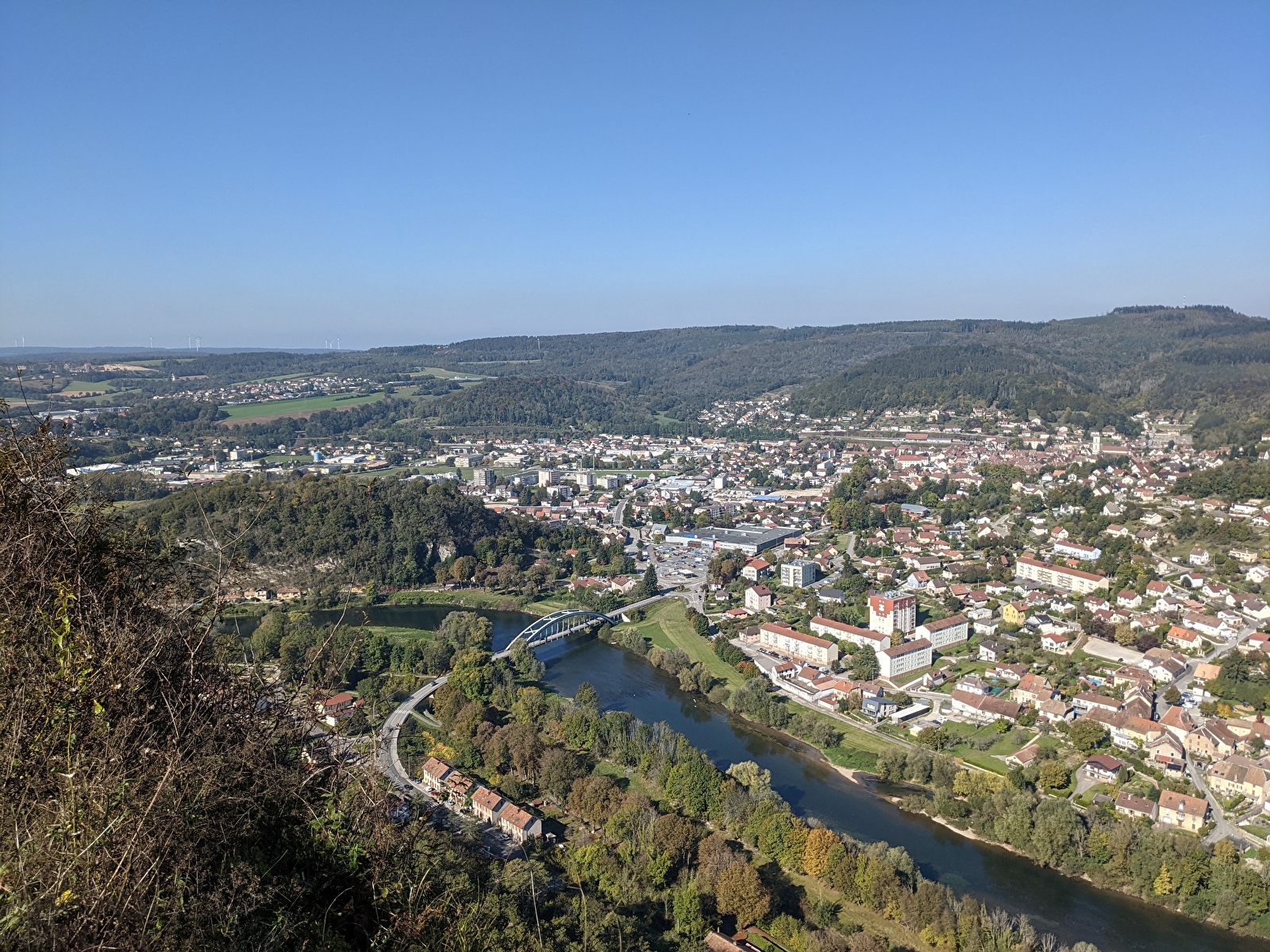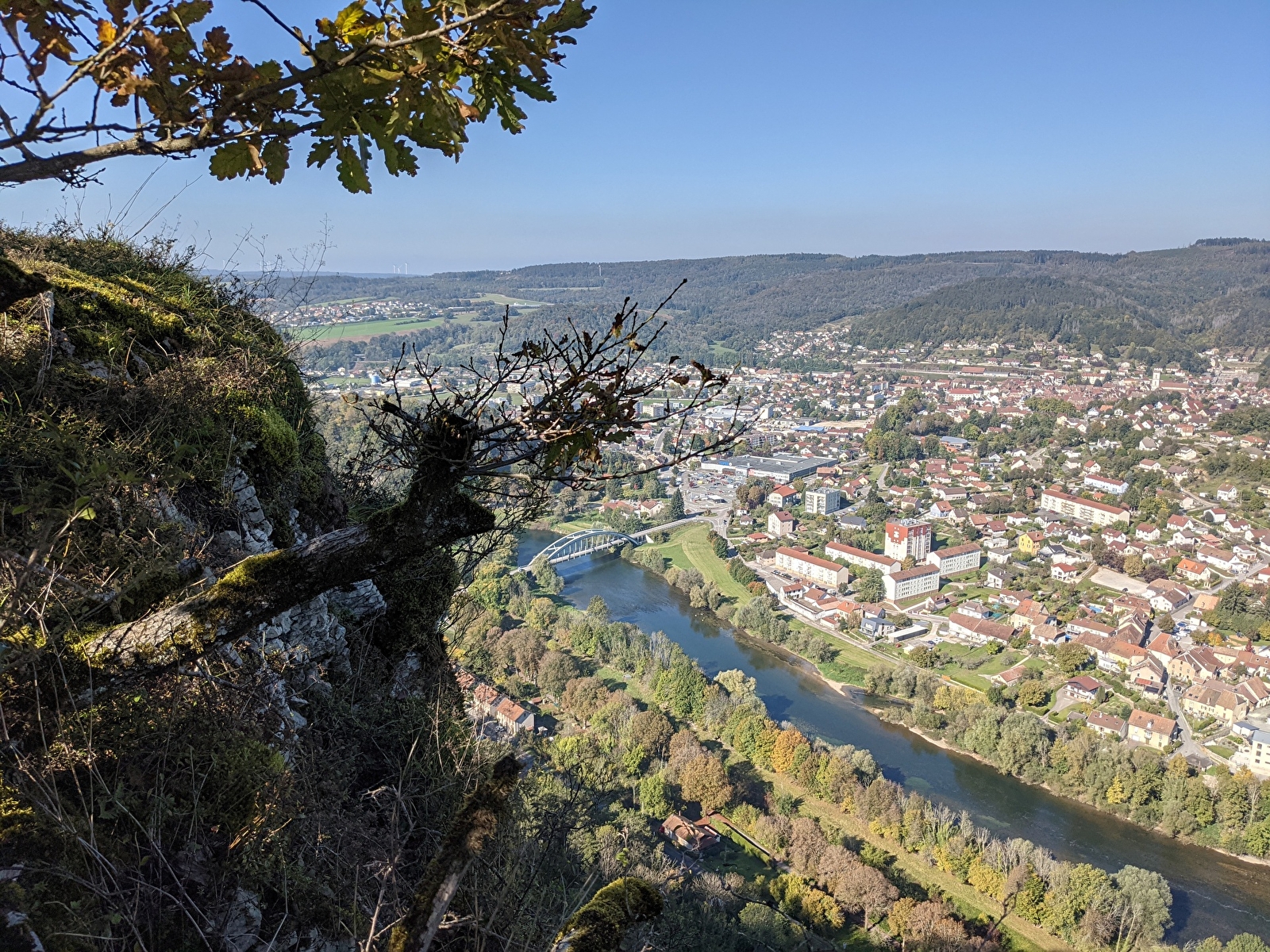 Schritt 6: Nachdem Sie diesen schönen Kammweg entlanggegangen sind, gelangen Sie zu einem Aussichtspunkt mit freiem Blick auf das Doubs-Tal und die Stadt Baume-les-Dames: dem Roche de Châtard.