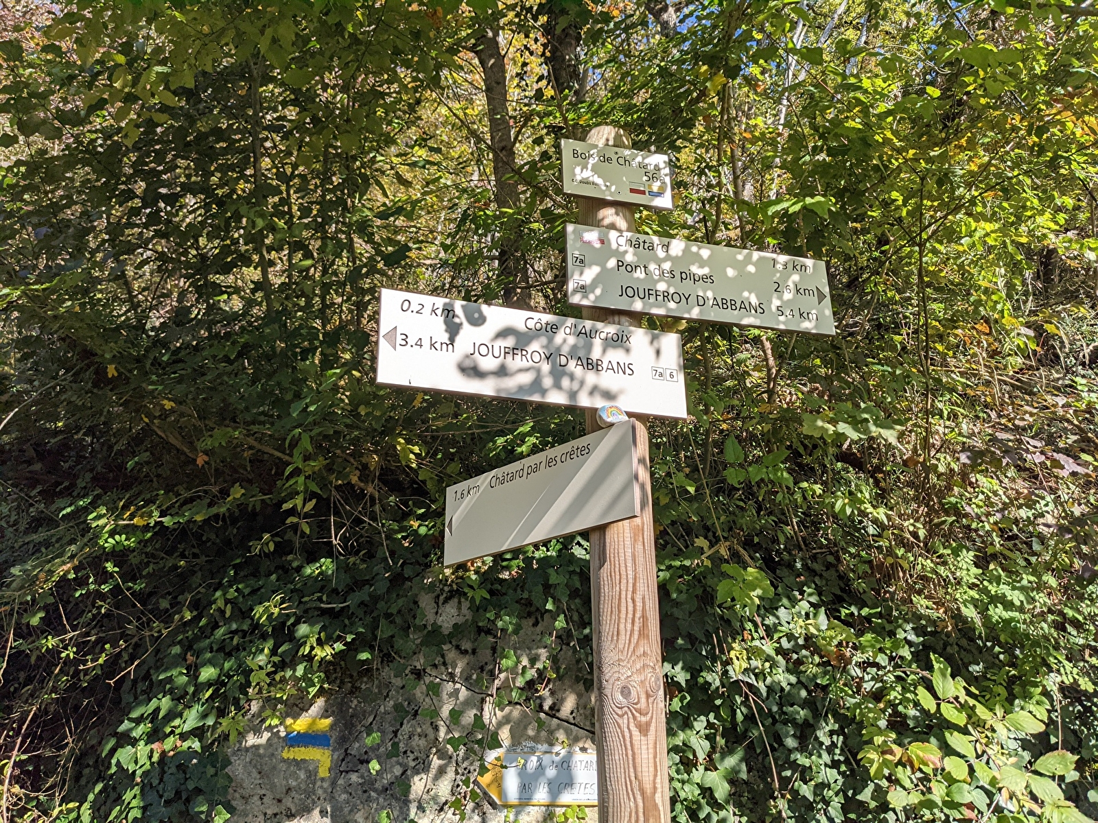 Schritt 7: Sie stehen nun vor dem Aussichtspunkt Croix de Châtard, einem der höchsten Aussichtspunkte der Baume-Hügel.