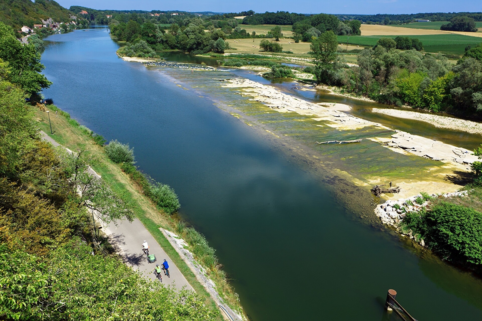 Der Doubs fließt hier an der Klippe (Klettergebiet) entlang, wo in einem Hohlraum, dem sogenannten "Loch der Mutter Tinkerbell", archäologische Überreste aus dem Paläolithikum, dem Neolithikum und der Bronzezeit gefunden wurden.