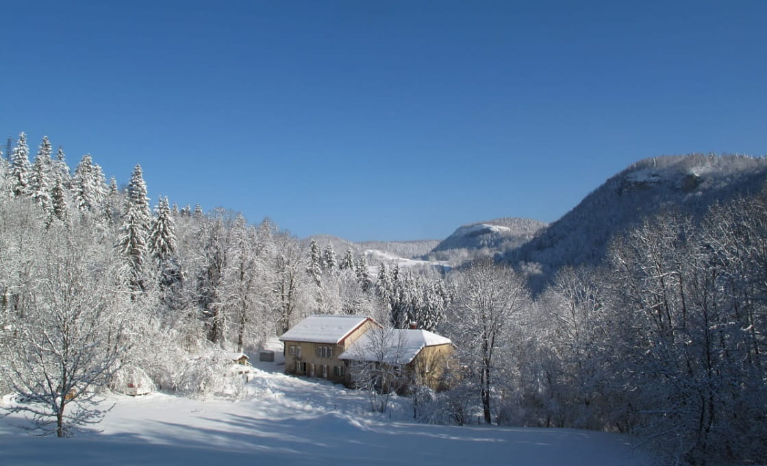 Was gibt es Besseres nach einem schönen Wandertag im Schnee als eine schöne warme Dusche? Danach Zeit für einen gemütlichen Moment am Kamin, bevor du ein paar stärkende Jura-Spezialitäten probierst?