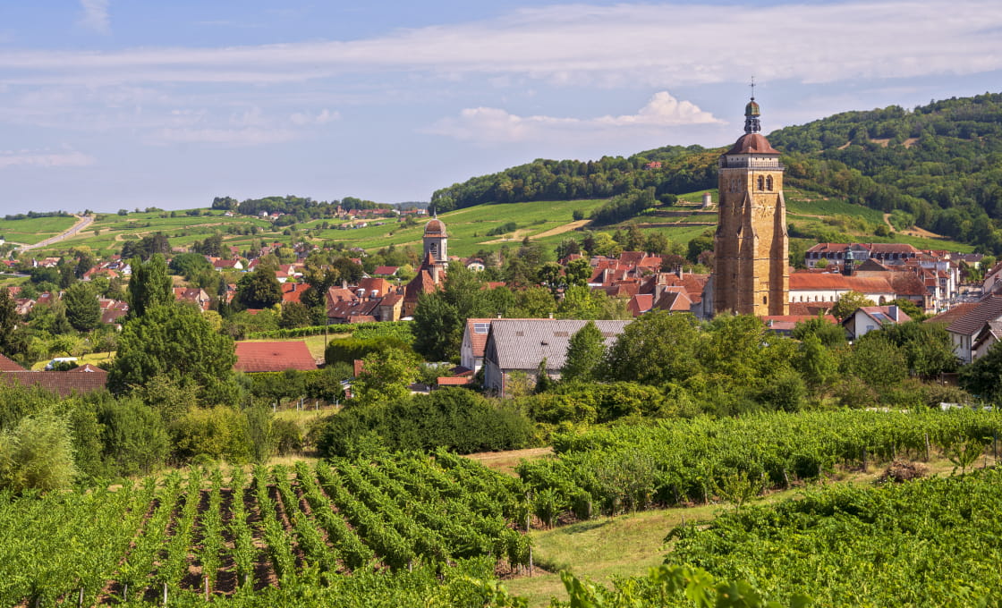 Hoch oben auf einem Felsen wacht Château-Chalon über seine Weinberge, in denen der berühmte Vin Jaune angebaut wird. Aus der Burg, die ihm seinen Namen gab, und einer Benediktinerabtei entstanden, hat konnte das „Aussichtsdorf“ die Überreste des Wachturms und die romanische Kirche Saint-Pierre bewahren.